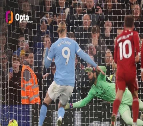 英超第25輪,曼城客場(chǎng)2-1逆轉(zhuǎn)擊敗利物浦,哈蘭德在92分42秒打入的點(diǎn)球是有統(tǒng)計(jì)以來英超客戰(zhàn)利物浦最晚的制勝球...