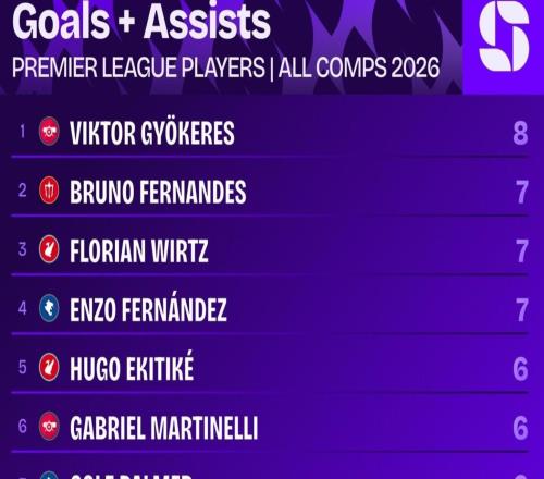 哲凱2026年各項(xiàng)賽事已直接參與8球,同期英超球員中最多