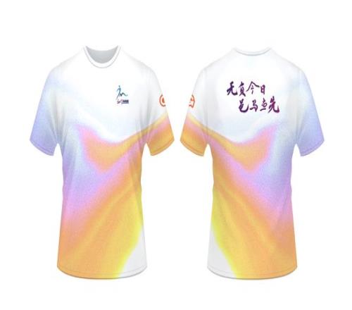 參賽服裝設(shè)計(jì)采用炫彩粉漸變色,既躍動(dòng)著馬拉松的活力與激情,也呼應(yīng)著江門清新、開放、多元的城市氣質(zhì)。正面飾以賽事專屬LOGO,背面“無(wú)負(fù)今日 邑馬當(dāng)先”的主題口號(hào)躍然其上,這不止是一句標(biāo)語(yǔ),更是奔跑者的共同誓言。口號(hào)的力量與腳步的節(jié)奏同頻共振,每一位跑友身披這份色彩與宣言,向世界展示一個(gè)青春昂揚(yáng)、奮進(jìn)不息的江門。