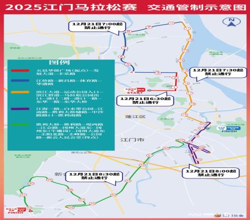 2025江門馬拉松賽比賽起點(diǎn)設(shè)在五邑華僑廣場(chǎng),半程馬拉松終點(diǎn)設(shè)在江海一路(白水帶體育公園)、全程馬拉松終點(diǎn)設(shè)在新會(huì)人民會(huì)堂。發(fā)布會(huì)上,江門市公安局治安支隊(duì)副支隊(duì)長(zhǎng)杜憲國(guó)介紹,今年馬拉松賽事,對(duì)賽道沿線及受影響的周邊道路,將實(shí)施“分段管制、滾動(dòng)封閉、分步解除”的交通管制方式。根據(jù)選手用時(shí),公安部門分時(shí)分段對(duì)前方道路實(shí)施封閉管制,在解封階段根據(jù)跑者隊(duì)伍和收尾車輛通過(guò)情況,分段分步安全解除交通管制,最大限度壓減交通管制時(shí)間,第一時(shí)間恢復(fù)道路正常通行。