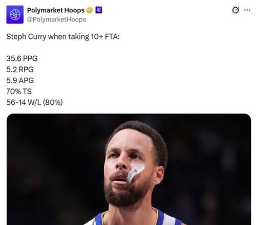 拿下這一場勝利后,當庫里單場獲得10+罰球時,勇士戰(zhàn)績提升至56勝14負,勝率高達80%,期間庫里場均轟下35.6分5.2板5.9助,真實命中率70%。