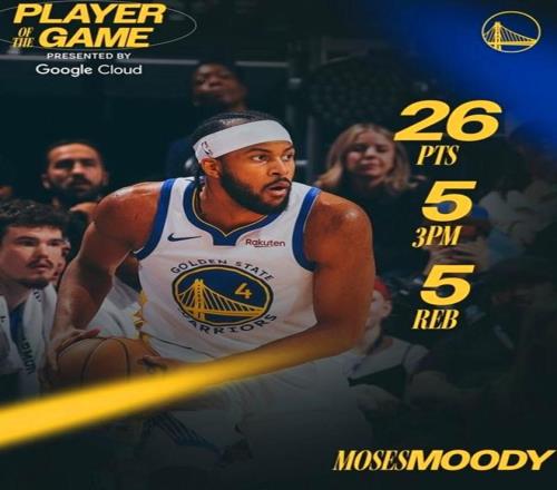 憑借這樣的表現(xiàn),穆迪在賽后被勇士隊官方評選為本場最佳。