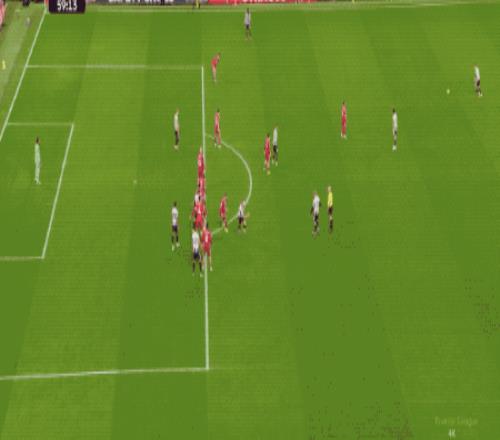 第32分鐘,利物浦的反擊簡潔有效,?;倏瞬迳?,小角度吊射,波普順勢將球擋出,特里皮爾趕緊大腳解圍。