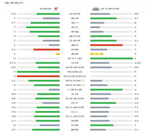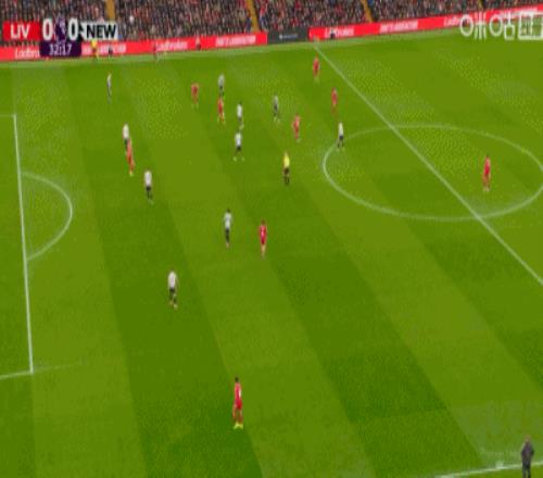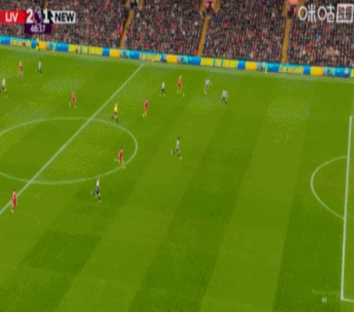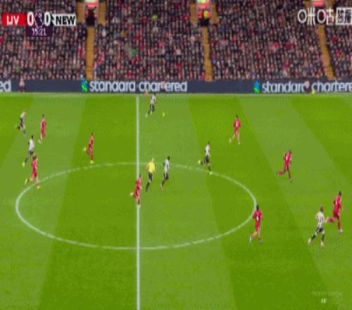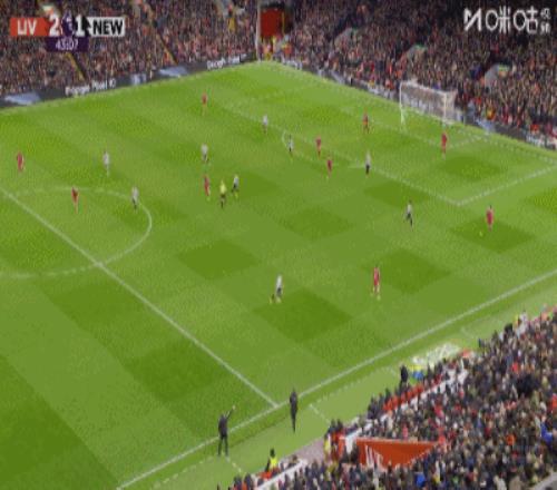 第36分鐘,戈登禁區(qū)右路低射遠角破門,紐卡1-0利物浦