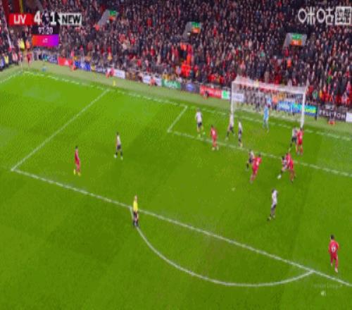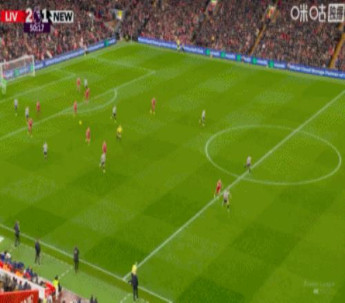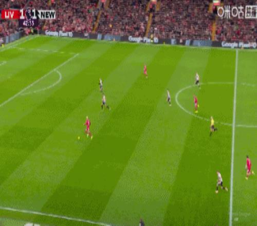 第41分鐘,?;倏私麉^(qū)推射破門,利物浦1-1扳平紐卡