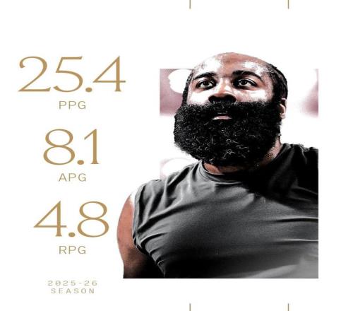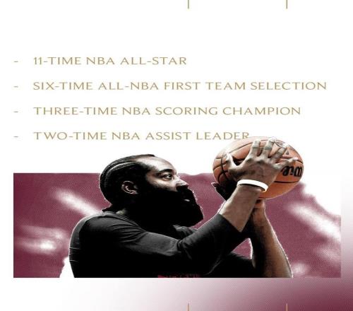騎士還為哈登制作了歷史榮譽海報:11次全明星、6次一陣、3次得分王、2次助攻王。