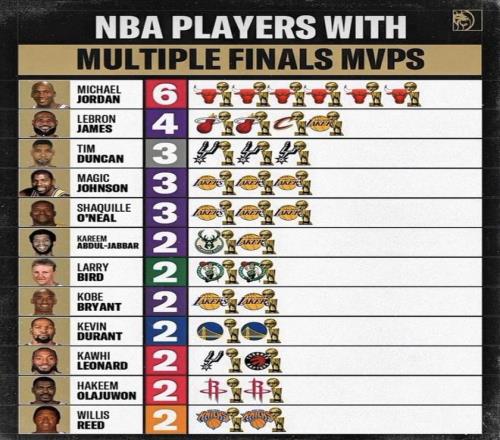 這份榜單的門檻:只看“總決賽MVP≥2次”