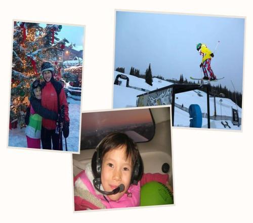 10歲時的谷愛凌與母親燕在太浩湖;約6歲時在飛機(jī)上;9歲時在科羅拉多州銅山舉行的全國青少年比賽中。