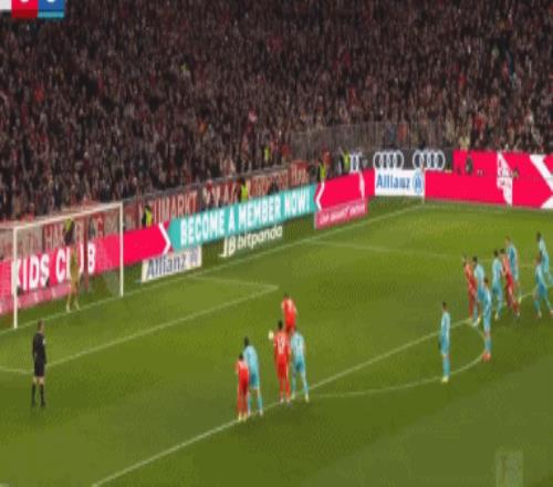 比賽的第17分鐘,迪亞斯突入禁區(qū)之后被阿克波古馬拉倒,主裁判判罰點(diǎn)球并且向阿克波古馬出示紅牌。凱恩主罰點(diǎn)球一蹴而就,1比0!