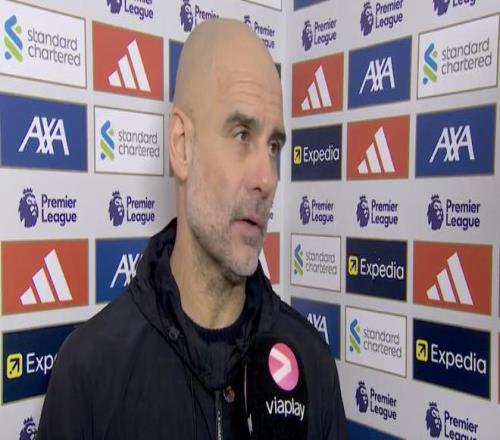 英超第25輪,曼城客場(chǎng)2-1擊敗利物浦,賽后,曼城主帥瓜迪奧拉接受了Viaplay Fotball的采訪。