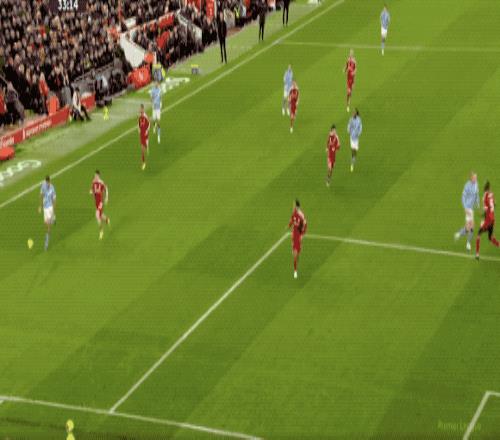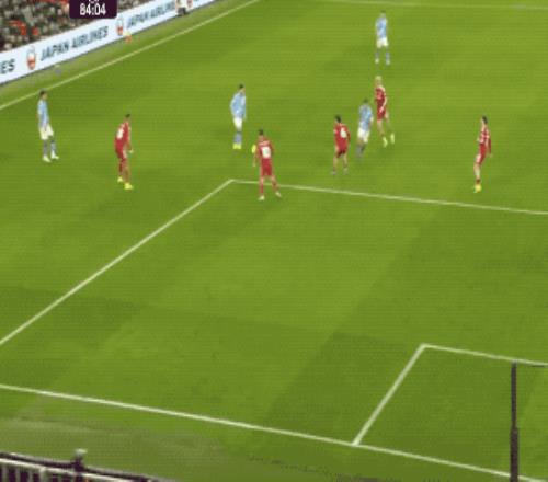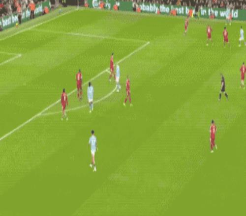 下半場開始后,場上風云突變,利物浦大舉壓上,曼城越踢越被動。第54分鐘,接到薩拉赫的傳中,?;倏祟^球頂偏,錯失良機。