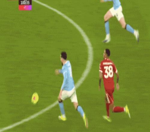 兩支球隊的部分戰(zhàn)術(shù)有些重合,那就是后腰游走到邊路,第34分鐘,羅德里下底傳中,哈蘭德不停球射門,阿利松注意力集中,將球沒收。