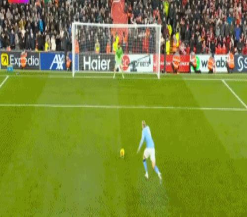 第91分鐘,阿利森撞倒努內(nèi)斯,主裁判判罰點(diǎn)球,哈蘭德主罰點(diǎn)球一蹴而就,2比1!進(jìn)球之后,哈蘭德脫掉球衣瘋狂慶祝。