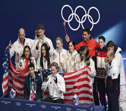 花樣滑冰團體賽,美國隊以1分的優(yōu)勢,力壓日本隊奪得冠軍,銅牌由意大利隊獲得。