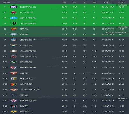 意甲第24輪結(jié)束了9場(chǎng)比賽,最新積分榜如下!