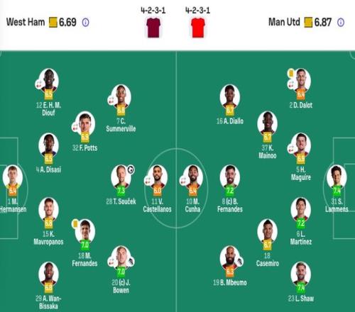 西漢姆聯(lián)首發(fā):1-赫爾曼森、15-馬夫羅帕諾斯、29-萬-比薩卡、4-迪薩西、12-迪烏夫(79'27-馬加薩)、18-馬特烏斯、28-紹切克、32-波茨(79'30-斯卡爾斯)、7-薩默維爾(89'2-沃克-彼得斯)、20-鮑文(89'17-阿達瑪·特勞雷)、11-卡斯特拉諾斯(69'9-卡勒姆·威爾遜)