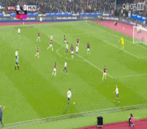 第49分鐘,鮑文傳中橫掃門前,紹切克近距離搶點破門,西漢姆聯(lián)1-0曼聯(lián)。