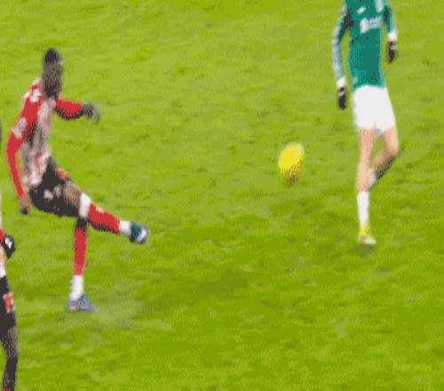 第33分鐘,加克波左路突破下底倒三角傳球,維爾茨停球擺脫一氣呵成,隨后起腳低射遠(yuǎn)角,擊中立柱彈出。