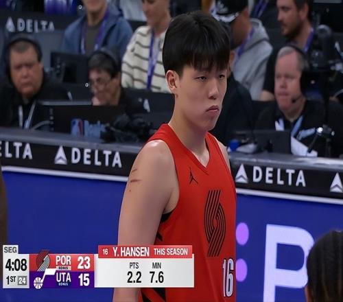 今天的比賽,楊瀚森總體發(fā)揮還可以,出場3分鐘,拿下了2分,其他數(shù)據(jù)都為0。首節(jié)上場之后,對手科利爾罰球,第二罰不進,楊瀚森卡住籃板球位置,隊友格蘭特順利撿漏拿下籃板。隨后的進攻回合,楊瀚森和后衛(wèi)打擋拆,然后順下往里走,一個輕巧上籃,沒有進,但是裁判哨響吹了菲利波夫斯基打手犯規(guī),楊瀚森獲得2次罰球的機會。但爵士隊主帥哈迪很不解風情,不知道是故意的還是為啥,對這個犯規(guī)進行了挑戰(zhàn)。