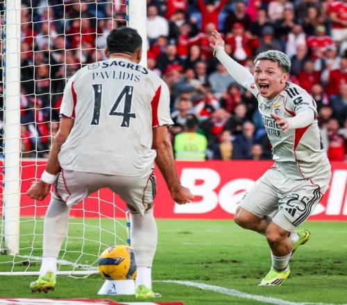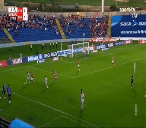 比賽開始后,如同外界預(yù)期那樣,強(qiáng)大的本菲卡很快控制上場的局面,第16分鐘,本菲卡就打出教科書式進(jìn)攻。阿勞若右路送出精準(zhǔn)傳中,帕夫利季斯在小禁區(qū)內(nèi)高高躍起頭槌打破僵局,本菲卡1-0領(lǐng)先。