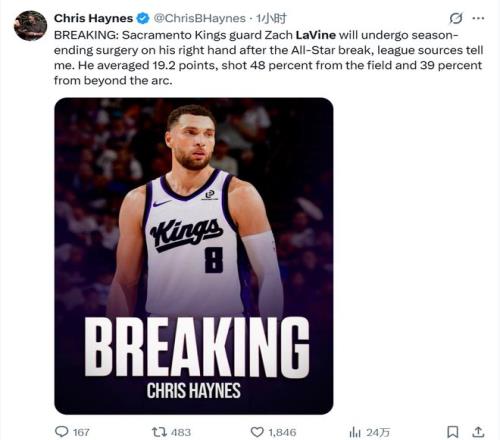 NBA今天全明星周末正式開啟,而在第一個項目名人賽開打期間,NBA又曝出一宗明星級選手賽季報銷的新聞: